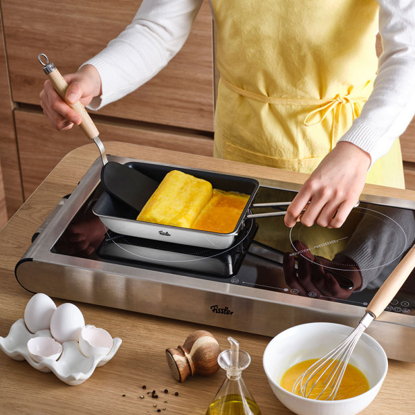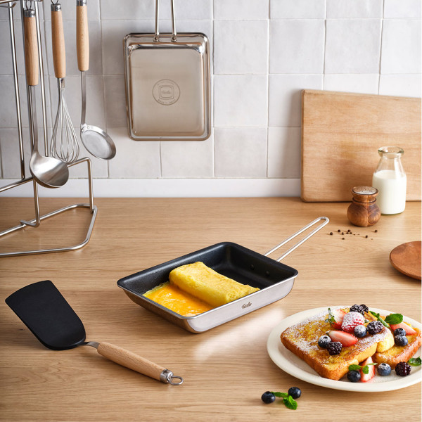 팬 내부의 측면을 정밀한 곡선 구조로 디자인해 계란말이나 부침요리 등 재료를 뒤집거나 말아 올리는 과정에서 음식이 가장자리에 걸리거나 들러붙지 않도록 설계됨